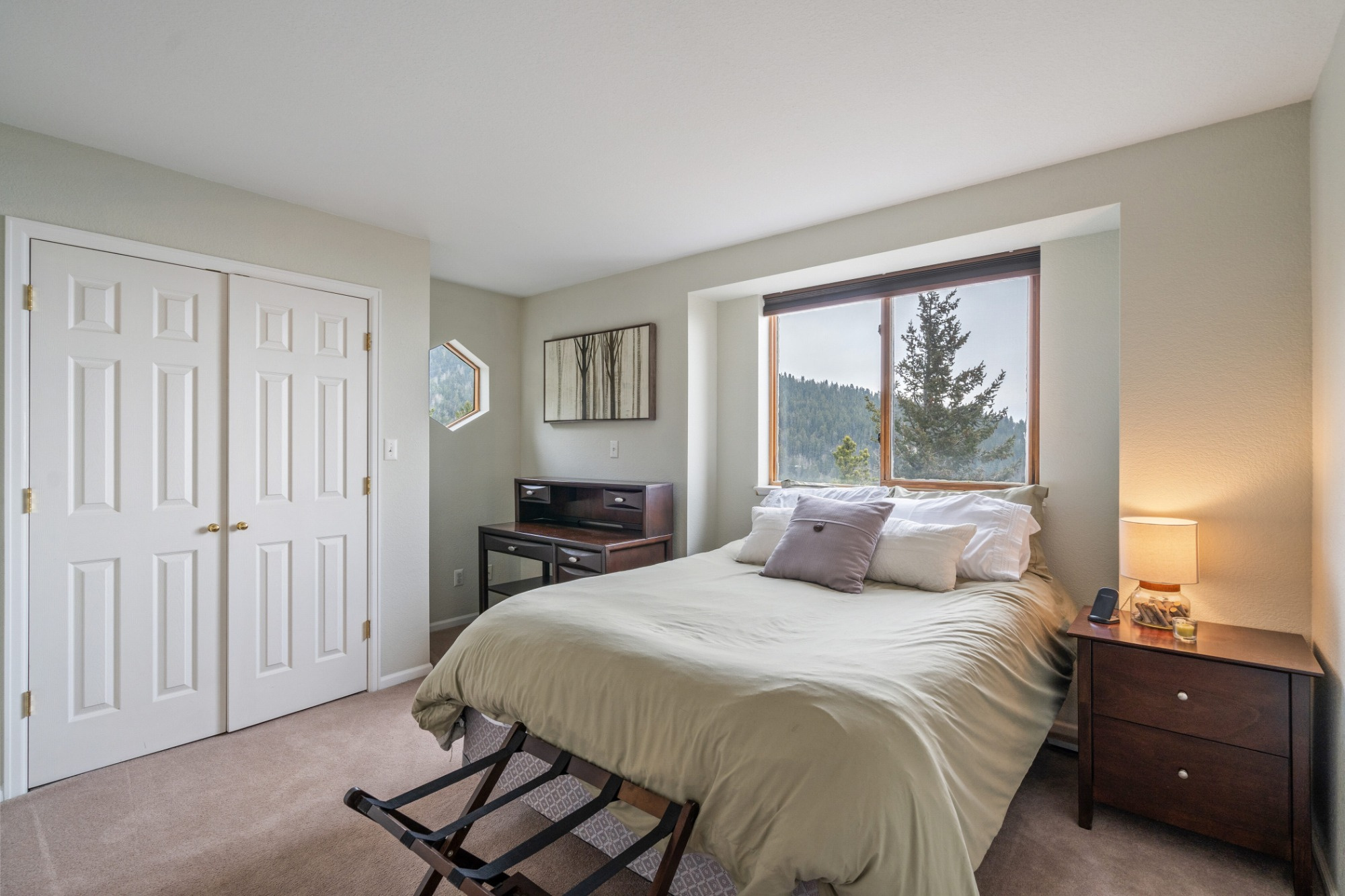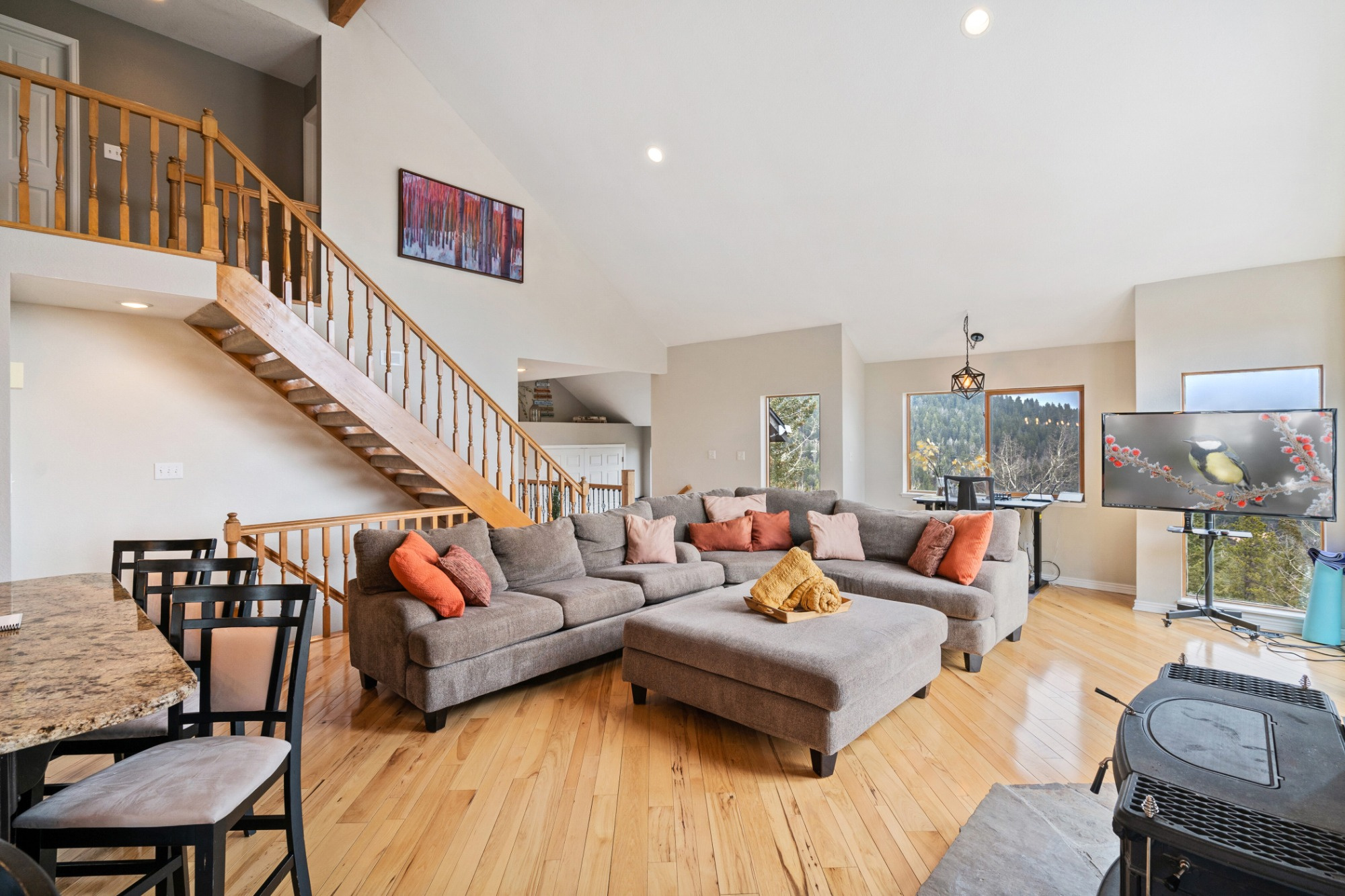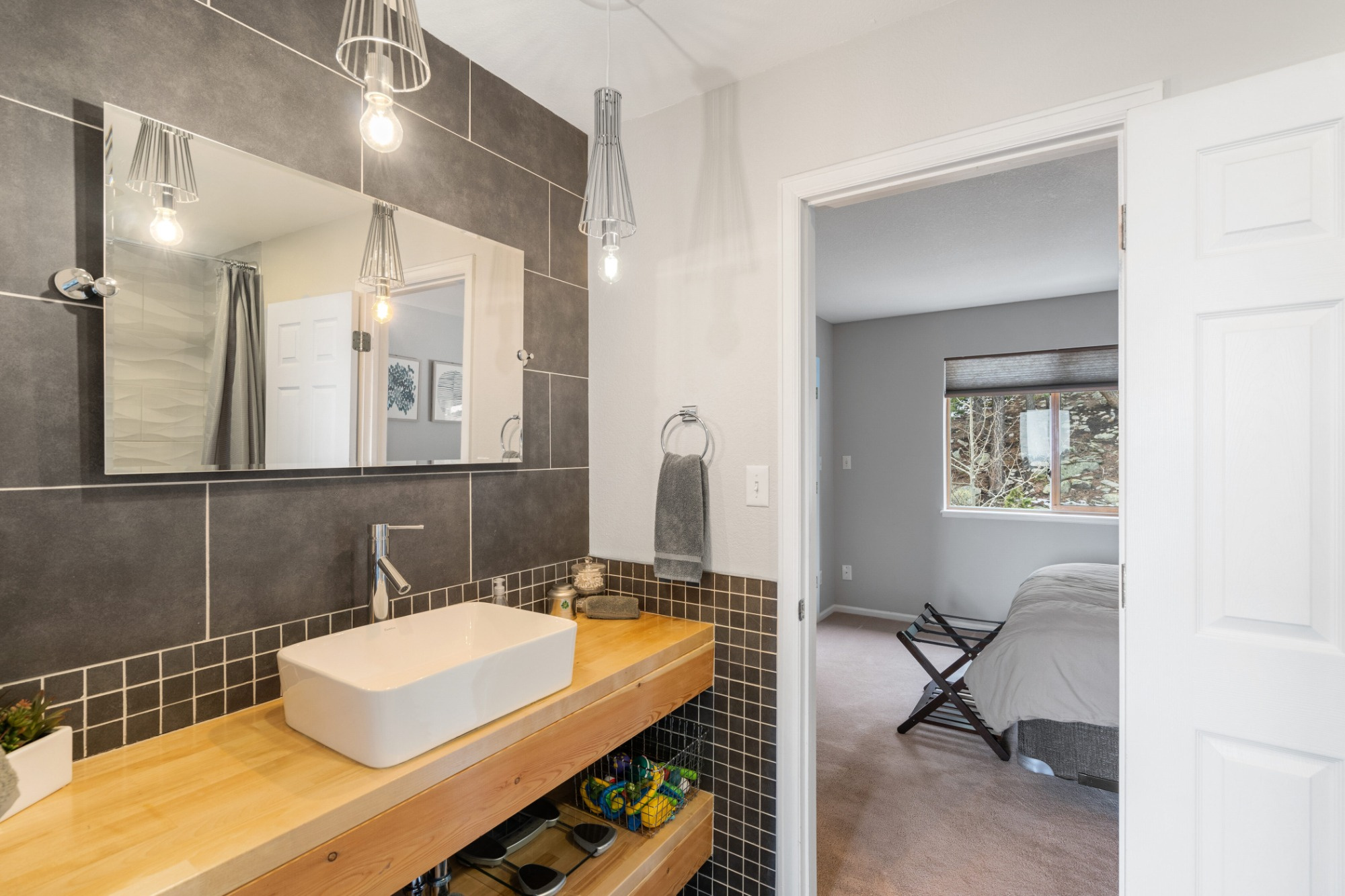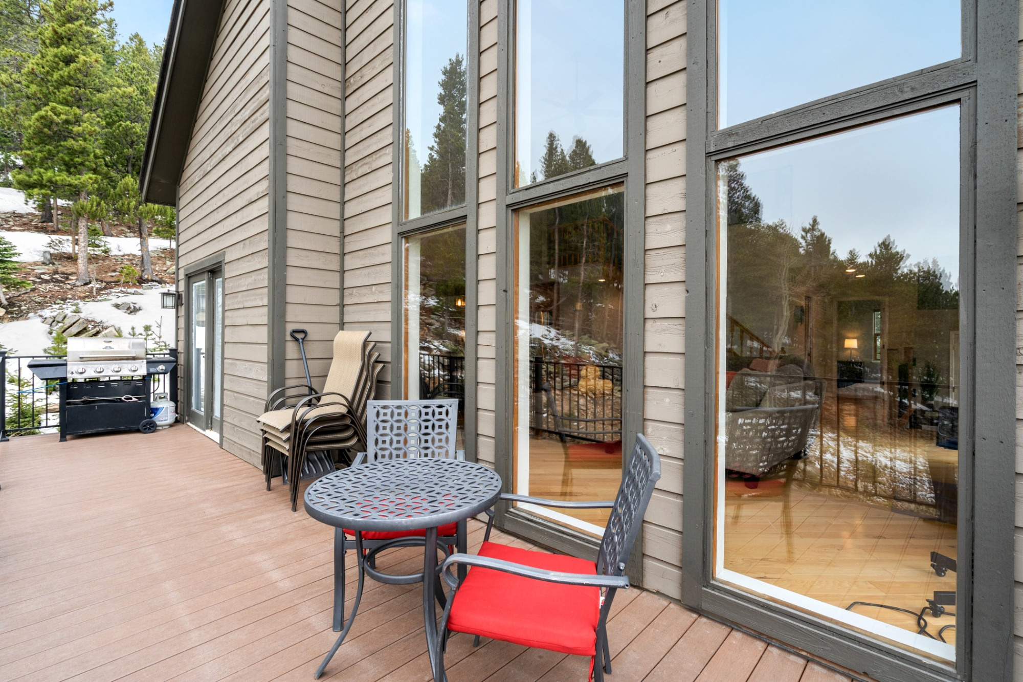 Imagine waking up each morning to breathtaking panoramic views that stretch across the majestic mountains of Evergreen, Colorado, where the serenity of nature meets sophisticated modern living. This stunning contemporary home sits peacefully in the quiet Echo Hills neighborhood, offering a thoughtfully designed floor plan that flows effortlessly from room to room. The main level welcomes you with an open-concept layout flooded with natural light, featuring a chef's kitchen with granite countertops and stainless appliances, while the luxurious primary suite provides your own private retreat with a spa-inspired bathroom. Upstairs, two additional bedrooms offer comfort and privacy, and the finished walkout level impresses with a guest suite, full bath, and cozy wood-burning stove—perfect for visitors or as a private sanctuary. Step outside from the lower level onto your private walkout patio where an upgraded hot tub awaits, while the expansive upper deck provides another perfect vantage point to soak in Colorado's beauty. You'll discover why this location is truly special: abundant wildlife roaming freely through the surrounding landscape, creating a front-row seat to nature's daily show. Despite the peaceful, secluded setting, you're just minutes from top-rated schools and everything Evergreen has to offer—the perfect balance of tranquil mountain living and convenient access to modern amenities. Fully furnished and move-in ready, this turnkey property isn't just a house; it's your invitation to embrace the elevated Colorado lifestyle you've been dreaming of.
